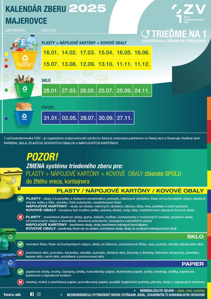 kalendár triedeného zberu vo Vašej obci na rok 2025
