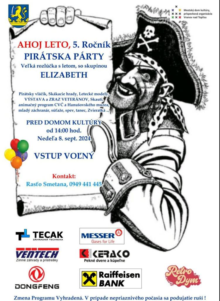 Príďte sa s deťmi zabaviť na rozlúčku s letom pre Domom kultúry vo Vranove nad Toplou 8.9.2024